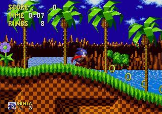 Un ejemplo del modo de juego en Green Hill Zone, la primera zona del juego.